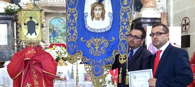 Dentro de las actividades programadas en este encuentro nacional, la comitiva abaranera, encabezada por el presidente de ‘La Verónica’, Fº Javier Tornero, el secretario, Jorge Fernández, y el tesorero, Fabián Camacho, tuvo ocasión de asistir a la bendición del estandarte con el que participan en nuestra Semana Santa, firmar en el libro de honor y portal el palio bajo el que desfilo la Santa Faz.