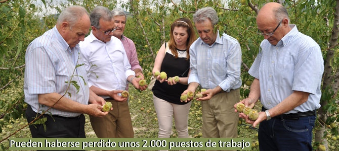 El titular de Agricultura señaló que son entre 2.500 y 3.000 las hectáreas afectadas por el granizo, y añadió que «aunque las pérdidas en la producción se estiman en un 25% de fruta que aún quedaba sin recoger, los daños más importantes se encuentran en la madera de los árboles, lo que puede perjudicar a futuras cosechas», dijo Cerdá, que, a continuación añadió:«Toca ponernos en marcha lo más rápidamente posible para tratar con fungicidas y cicatrizantes los árboles afectados y evitar que el daño no continúe en la cosecha siguiente. Pondremos los medios que se encuentren a nuestro alcance para solucionar el problema, y eso incluye ponernos al habla con Agroseguro para que agilicen el peritaje y no se anden con pequeñeces, porque aquí, en la zona cero, donde se produjo el epicentro de la tormenta, el daño es del cien por cien».