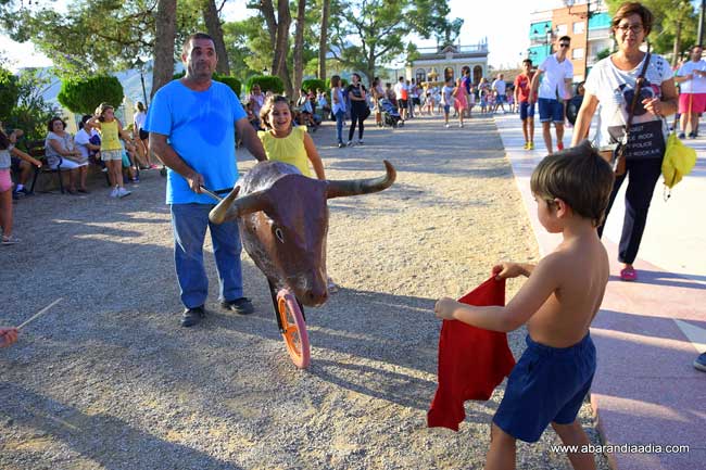 Con una alta participación de niños y niñas -más de un centenar según fuentes de la organización-, se ha celebrado este lunes una nueva edición del encierro infantil, en esta ocasión organizado por el recientemente creado Foro Taurino de Abarán. Los pequeños corredores partieron desde la mismísima puerta de la plaza de toros mientras eran perseguidos por los cinco astados.