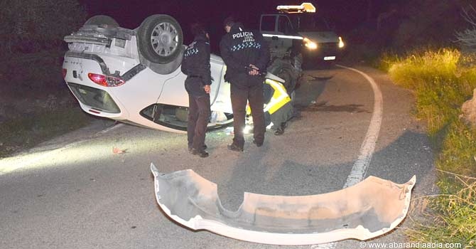 El conductor de un turismo resultó herido grave como consecuencia de un accidente de tráfico ocurrido en la madrugada de este lunes a la altura del kilómetro 1 la carretera de la Estación, en Abarán, donde un vehículo se salió de la calzada y volcó.