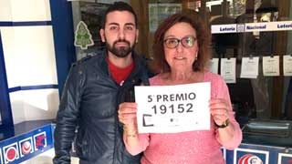 El número 19.152 fue uno de los agraciados con el segundo de los ocho quintos premios del Sorteo Extraordinario de Lotería de Navidad, dotado con 60.000 euros a la serie y que ha sido vendido en Cieza, San Pedro del Pinatar y Murcia. Los décimos agraciados -se desconoce, por el momento, cuantos han sido-  fueron vendidos en la administración de lotería del Camino de Murcia, frente a la Plaza de Toros, regentada por María José Pérez Pino.