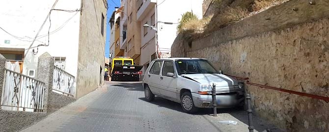 Los hechos ocurrieron el pasado miércoles por la mañana. La propietaria del turismo acababa de iniciar la marcha y circulaba por la pronunciada cuesta de la calle, a espaldas de la iglesia de San Juan Bautista. Fue entonces cuando se dio cuenta del problema mecánico y, en un acto de pericia, viró el volante para evitar que el coche siguiera avanzando y cogiera mayor velocidad, lo que originó el choque contra la robusta pared de la calle. Afortunadamente, el impacto solo dejó daños materiales, saliendo la conductora ilesa.