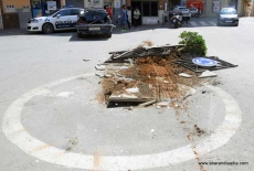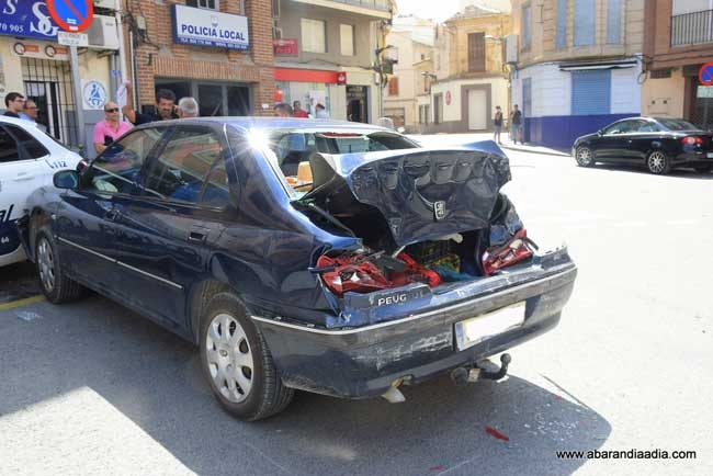 Durante su descontrolado trayecto causó daños en tres ciclomotores y en, al menos, cuatro turismos que encontró a su paso, a uno de los cuales se llevó literalmente por delante hasta empotrarlo contra un vehículo policial estacionado a las puertas de las dependencias policiales. Tampoco se libró de sufrir daños la pequeña rotonda del centro de la plaza, que acabó siendo reducida a escombros.