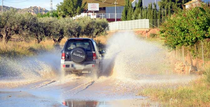 - Vehículos parados y obstaculizado la circulación-, debido a un embolsamiento de agua en la carretera RM-520, Blanca, a la altura de Azud de Ojós.