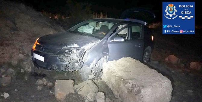 Dos personas resultaron heridas, con pronóstico reservado, como consecuencia de un accidente ocurrido este viernes por la noche en el camino de 'La Atalaya', en Cieza, donde, por causas que no han trascendido, un vehículo se salió de la vía e impactó contra unas rocas.