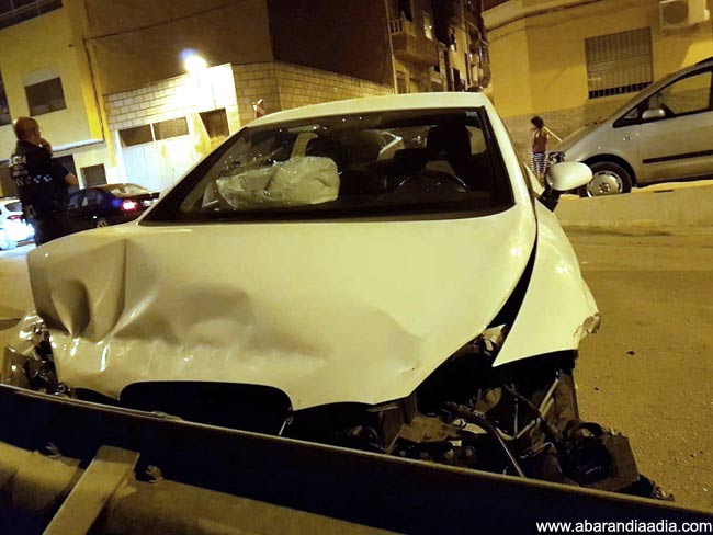 Un turismo, ocupado por dos mujeres -que por fortuna no sufrieron daños de importancia-, resultó notablemente dañado como consecuencia de un accidente ocurrido en la tarde/noche de este domingo. El suceso tuvo lugar al final de la pronunciada cuesta de la calle Vicente Aleixandre en su confluencia con la calle Molino de la Encomienda.