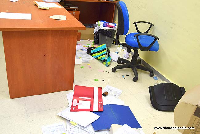 Ya en el interior, se dirigieron a la pequeña oficina que alberga el inmueble y, con una gran violencia -hasta el punto de que uno de los cacos llegó a herirse (había restos de sangre)-, golpearon los cristales de las puertas hasta conseguir abrirlas, iniciando a continuación una concienzuda búsqueda por armarios y cajones, revolviéndolo todo y causando un enorme desorden. «Hemos tenido que ir con mucho cuidado al entrar porque hay cristales por todos sitios. Lo han dejado todo tirado por los suelos, vaciando cajones, sacando documentos de sus archivadores. Y todo para llevarse 'cuatro monedas'», expresaba a este medio un empleado municipal.