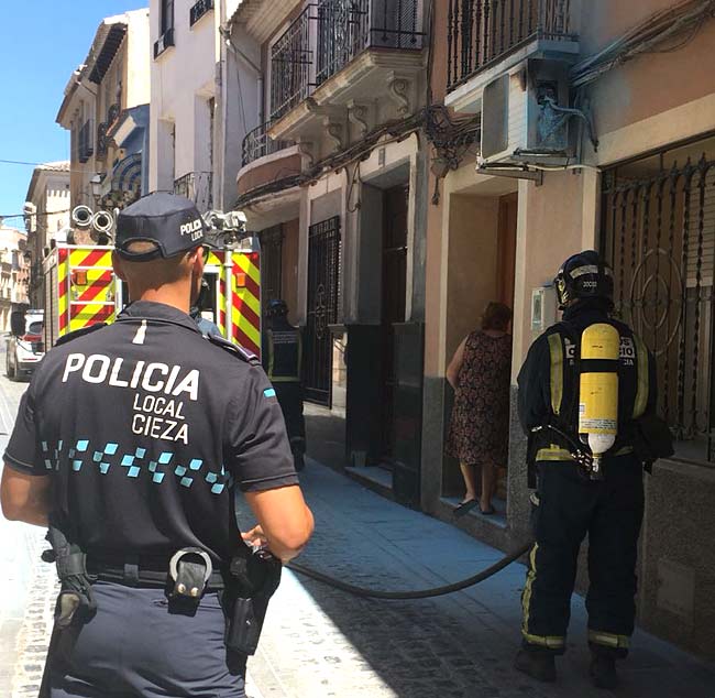 Una actuación de la Policía Local de Cieza ha evitado que el incendio declarado en un aparato de aire acondicionado de una vivienda cobrara mayor importancia. Los agentes, tras recibir la llamada de alerta, se han dirigido con la mayor celeridad al lugar del suceso, y, con ayuda de un extintor, lo han sofocado.