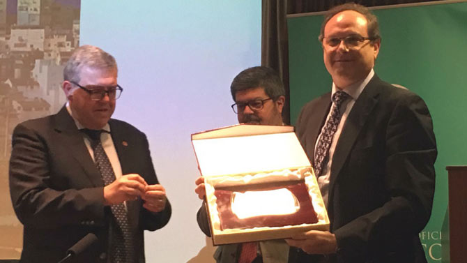 «Quiero agradecer a los médicos en general, y a la SMUHTA y RCV en particular, esta entrañable distinción; la primera de este tipo que recibo en mi tierra natal, y que recordaré con afecto siempre, sobre todo por el componente profesional y humano que conlleva», señaló Gómez en su discurso, reivindicando en el mismo la importancia de que médicos y farmacéuticos trabajen de forma coordinada en base a protocolos, fomentando la colaboración entre los diferentes profesionales de salud y niveles asistenciales en beneficio del paciente y del sistema sanitario.