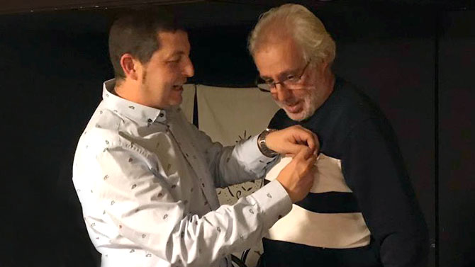 Así mismo, el colegiado José Alberto Martín Muñoz (Pitu), impuso el pin de plata a su pareja arbitral y gran amigo, Salvador García Nova,con motivo de cumplirse los 25 años en activo.