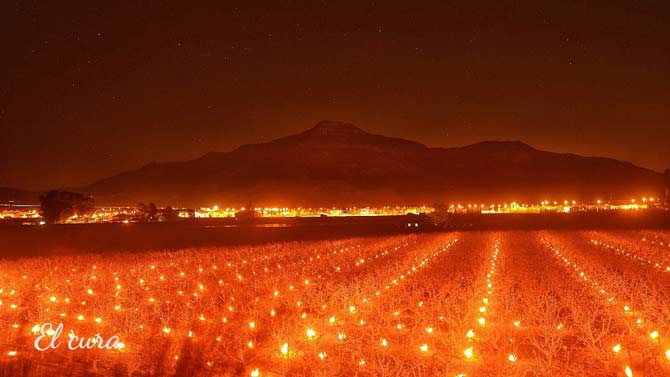 Las imágenes que acompañan a esta información, realizadas por Antonio Moreno 'El Cura' durante la pasada noche y en el amanecer de hoy, muestran algunos modos en los que los agricultores intentan paliar esta bajada de la temperatura.