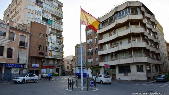 Operarios municipales del Ayuntamiento de Abarán procedieron en la mañana de este martes a la colocación de un mástil, de más de 10 metros de altura, sobre el que se ha izado la enseña nacional, que ya ondea desde la rotonda ubicada en el centro del municipio y presidiendo la plaza de la Zarzuela, uno de los lugares más transitados y emblemáticos del municipio. De manera posterior, este viernes se hacía un cambio para colocar una bandera de mayores dimensiones, dado que la anterior quedaba un tanto desproporcionada por su pequeño tamaño para un mástil de tales dimensiones.