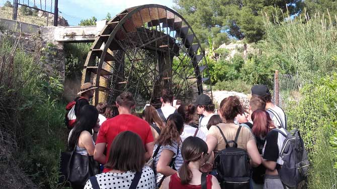 En la tarde del pasado viernes 10 de mayo, 70 alumnos de la Universidad de Murcia, del grado de Bellas Artes, tuvieron ocasión de conocer, guiados y acompañados por Jesús Joaquín López Moreno, miembro de la Asociación Cultural 'La Carrahila' e investigador en la materia, la evolución del paisaje agrícola de Abarán. Se trataba de una sesión práctica, programada dentro de la asignatura 'Paisajes Culturales', en la que los alumnos y sus profesores pudieron recorrer la 'Ruta de las Norias' «para interiorizar cómo ha evolucionado el paisaje de este entorno histórico a lo largo de los últimos dos milenios, así como la problemática que acecha a los espacios agrícolas tradicionales».