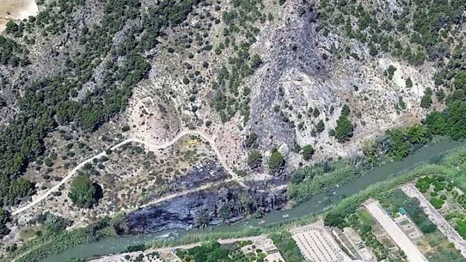 Las primeras estimaciones citan que la superficie afectada por este incendio fue de entre cuatro y cinco hectáreas (matorral, cañas, bosque de ribera y pinar). Efectivos del Seprona de la brigada de investigación de delitos ambientales también se encuentra en el lugar para intentar descubrir bajo qué circunstancias se pudo originar el fuego, declarado como totalmente extinguido en el mediodía de hoy sábado.