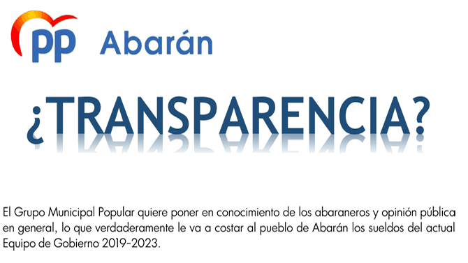 A través de una nota de prensa, el Grupo Municipal Popular en el Ayuntamiento de Abarán «quiere poner en conocimiento de los abaraneros y opinión pública en general lo que verdaderamente le va a costar al pueblo de Abarán los sueldos del actual Equipo de Gobierno 2019-2023».
