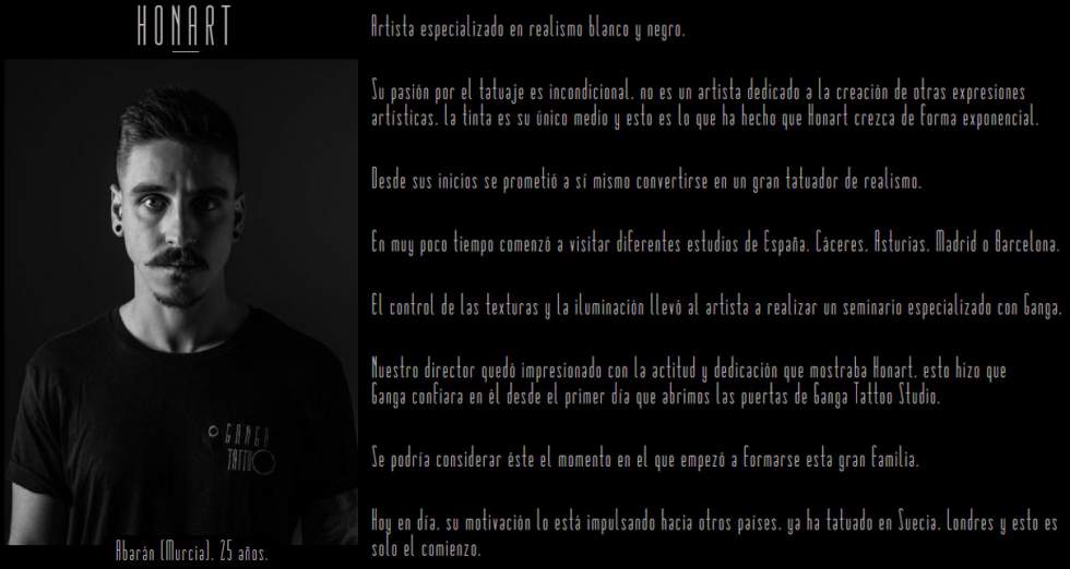 Su pasión por el tatuaje es incondicional. No es un artista dedicado a la creación de otras expresiones artísticas. La tinta es su único medio y esto es lo que ha hecho que Honart crezca de forma exponencial y que, en muy poco tiempo, ya haya visitado diferentes estudios de España: Cáceres, Asturias, Madrid o Barcelona, entre otros. Hoy en día, su motivación lo está impulsando hacia otros países y ya ha tatuado en Suecia, Londres. Y esto es solo el comienzo.