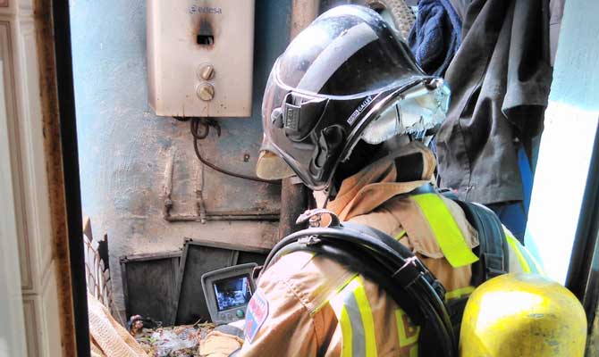 Y entre uno y otro incendio, los bomberos tuvieron que intervenir para sanear el voladizo de un edificio situado en la calle Cadenas del que han caído cascotes a la calzada.
