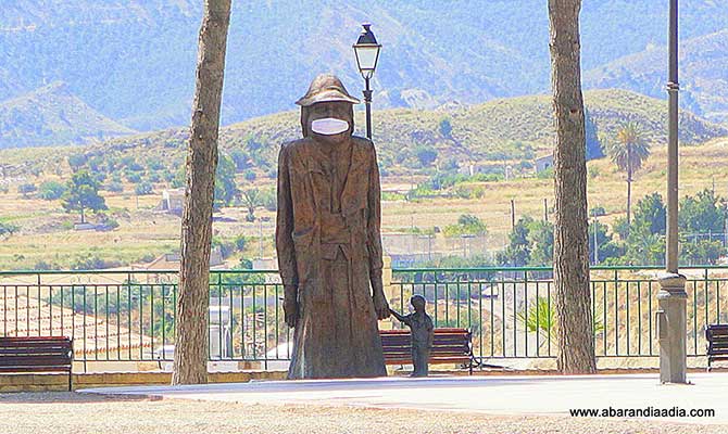 A modo de ejemplo y con el propósito de concienciar sobre su uso en aquellos lugares y/o momentos donde sea obligatorio llevarla, la escultura en homenaje a los gigantes de Abarán situada en el paseo de la Ermita luce desde hoy con mascarilla en clara alusión a esta esencial medida de protección frente al coronavirus.