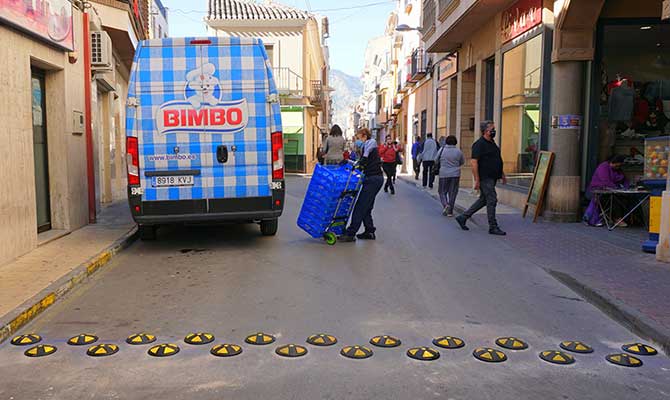 Personal del Ayuntamiento de Abarán ha procedido en la mañana de este martes a la colocación de una serie de delimitadores de velocidad lenticulares en la calle Dr. Molina, una medida encaminada a la reducción de la velocidad de los vehículos que transitan por la zona y que se ha extendido también a la calle Médico Gómez y posteriormente a la calle Manuel Ausensi.