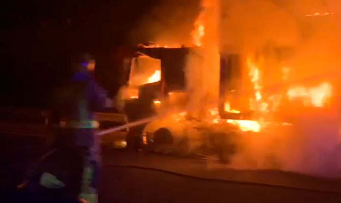 No fue hasta las 18:50 horas cuando los bomberos indicaron que el incendio quedaba controlado, y que el fuego acabó calcinado por completo la cabina del camión y afectando a los depósitos de gasoil.