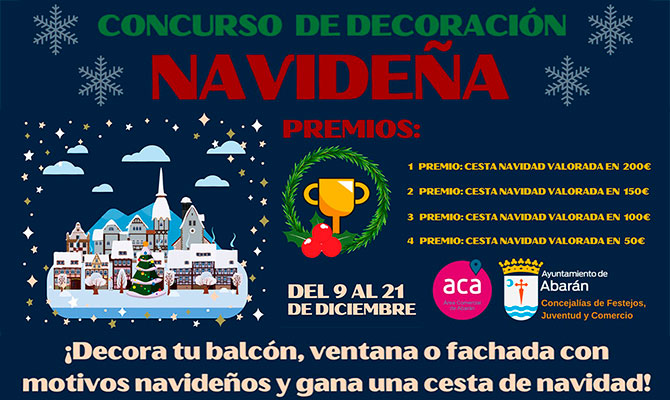 Las concejalías de Festejos, Juventud y Comercio, con la colaboración de la Asociación de Comerciantes de Abarán (ACÁ), pone en marcha el ‘I Concurso de decoración navideña de balcones y fachadas’, una iniciativa que entregará cuatro cestas repletas de productos navideños a los ganadores.