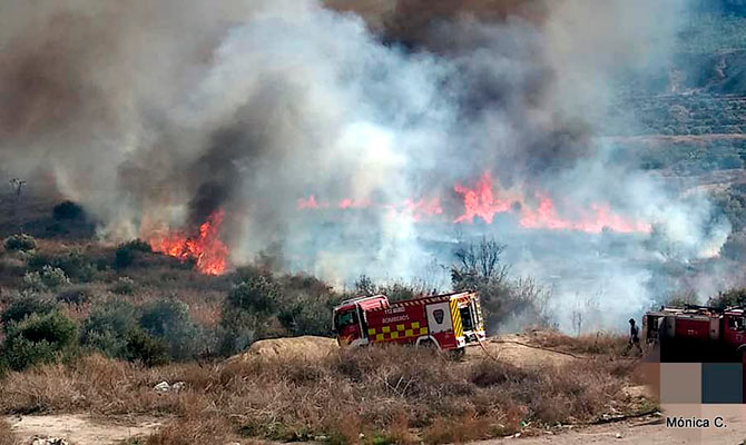 Sobre las una y cuarto de la tarde los efectivos se ponían en marcha para hacer frente a un fuego localizado a las afueras (avenida José Ríos Gil), un lugar ya de sobra conocido por los bomberos debido a los recurrentes incendios que se vienen produciendo en la zona. En esta ocasión las llamas se extendieron por una superficie de unas dos hectáreas de matorral y olivos, algunos de ellos centenarios, situados entre el Hospital de Cieza, el IES Los Albares y el colegio Jaime Balmes.