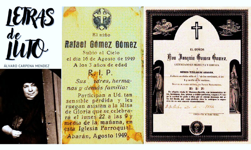 En vísperas del Día de Todos los Santos, nuestro compañero Álvaro Carpena nos ofrece un curioso e interesante artículo que, bajo el título de LETRAS de LUTO, recoge algunos retazos costumbristas de cómo eran antiguamente los entierros en Abarán, recordando cómo el tañido de las campanas anunciaban si el fallecido era hombre o mujer, o cómo se anunciaban la defunciones a través de unas 'cartas mortuorias' que se confeccionaban en las imprentas locales y en las que se solía incluir una foto de la persona fallecida junto a los datos del oficio religioso y los nombres de los desconsolados familiares entre los que se ponían los nombres de los padres, hermanos, primos, sobrinos... e incluso hasta de los amigos.
