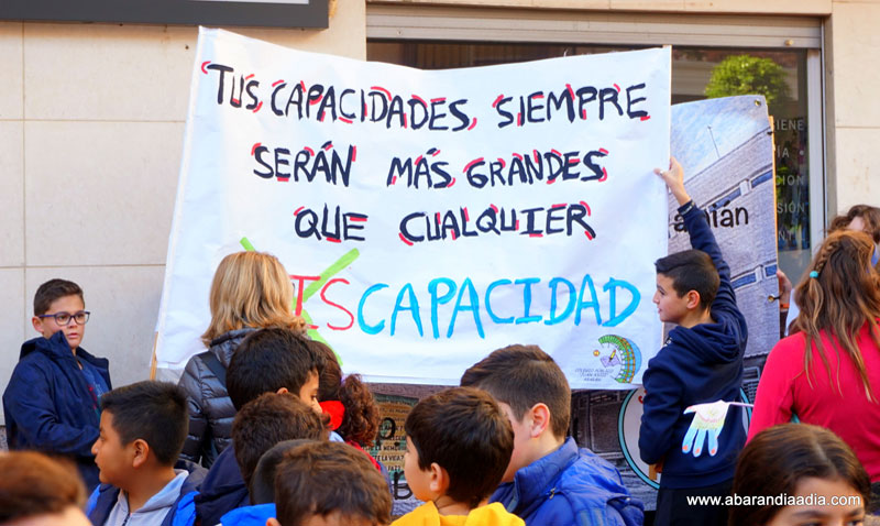 Dentro de las actividades que se han organizado en Abarán con motivo del Día Internacional de las Personas con Discapacidad que se conmemora el 3 de diciembre, este miércoles se celebró la ‘II Marcha por la Discapacidad’ en la que participaron unos 400 escolares de distintos centros educativos de nuestro municipio.