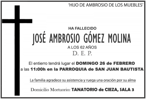 Si desean informar de la muerte de un familiar/amigo/conocido y facilitarnos los datos de sus exequias (hora del entierro, domicilio mortuorio, etc), contacte por WhatsApp en el 615 27 89 22.