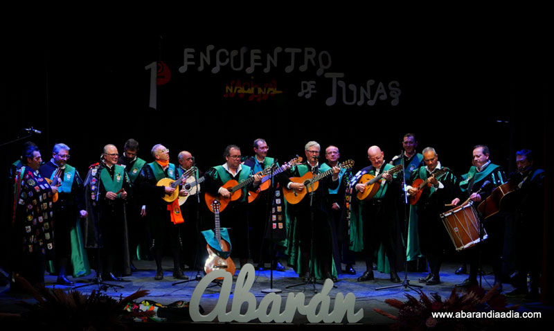 El teatro Cervantes se llenó este sábado para acoger el I Encuentro Nacional de Tunas 'Villa de Abarán', con tres formaciones que derrocharon buena música y buen humor y que ofrecieron un escogido repertorio de canciones que fueron premiadas con cálidos aplausos y ovaciones.