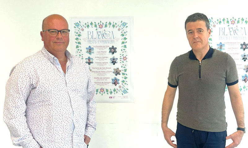 El alcalde de Blanca, Pedro Luis Molina, y el concejal de Festejos, Vicente Candel, han presentado este viernes la programación de las Fiestas de Primavera 2023 en honor a San Roque que se celebrarán del 9 al 16 de abril.