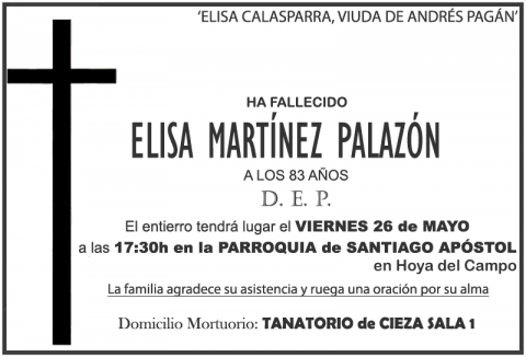Si desean informar de la muerte de un familiar/amigo/conocido y facilitarnos los datos de sus exequias (hora del entierro, domicilio mortuorio, etc), contacte por WhatsApp en el 615 27 89 22.