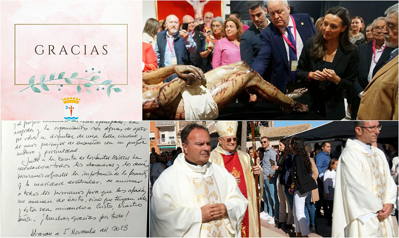 Tras el intenso fin de semana vivido en Abarán que ha convertido a nuestro municipio en el epicentro de un fervor religioso y cultural sin precedentes hasta ahora, y enmarcado en la XX Jornada Diocesana de Hermandades y Cofradías de la Diócesis de Cartagena, muchas han sido las felicitaciones y los agradecimientos dirigidos a los organizadores y colaboradores que lo han hecho posible, destacando, de manera especial, la gratitud reflejada por el obispo de la Diócesis, D. José Manuel Lorca Planes, en el libro de firmas de la JHS de Abarán, las palabras de la consejera de Turismo, Cultura, Juventud y Deportes de la CARM, Carmen Conesa en el acto inaugural de la exposición 'El hombre de la Sábana Santa', o el comunicado emitido por el consistorio abaranero en el que «agradece y felicita a todas las personas que han hecho posible tales eventos, envueltos en la solemnidad y respeto que se merecen los diferentes actos desarrollados».
