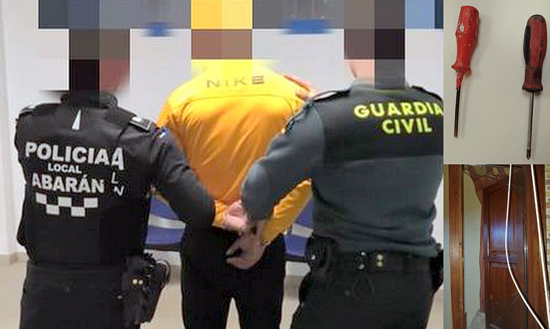 Agentes de la Policía Local de Abarán consiguieron desbaratar este miércoles, a primera hora de la noche, los delictivos planes de un individuo al que se sorprendió en el interior de una vivienda a la que había accedido usando la fuerza. Fue gracias a la colaboración ciudadana que el detenido pudo ser localizado aún dentro del inmueble.