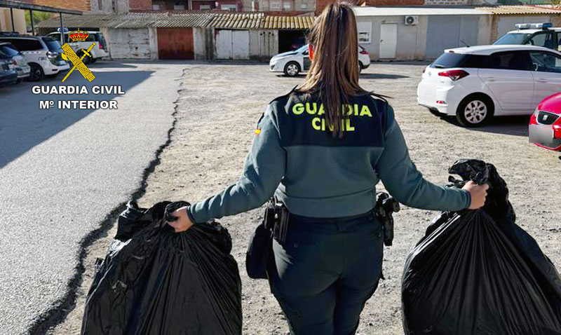 La actuación se inició de madrugada, cuando una patrulla de Prevención de Seguridad Ciudadana, que patrullaba por el municipio de Villanueva del Río Segura, se percató de la existencia de unos sacos de basura repletos de marihuana en una zona poco iluminada.
