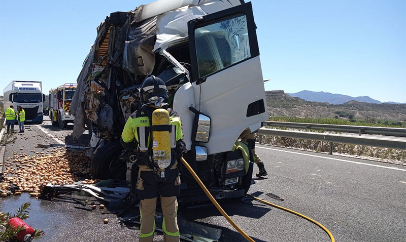 Servicios de emergencia han atendido y trasladado a los conductores de dos camiones que han resultado heridos al colisionar los vehículos que conducían en la autovía A-30 a la altura del kilómetro 102, en dirección hacia Albacete, en el término municipal de Cieza.