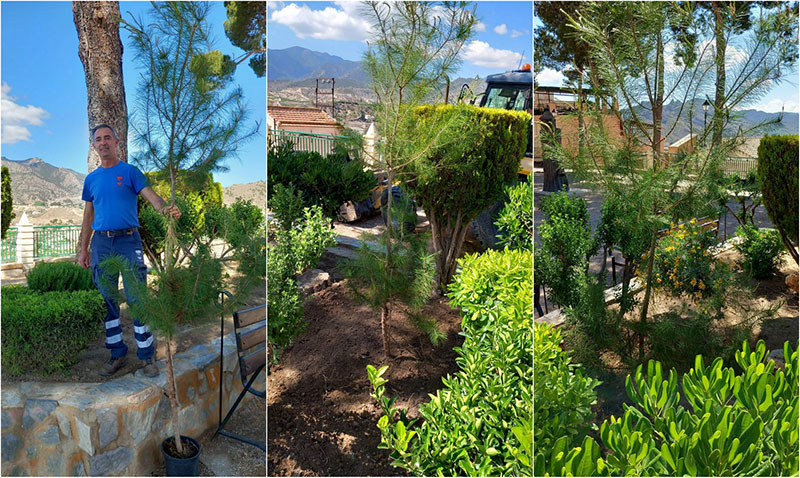 Tras la tala la semana pasada de uno de los legendarios pinos que pueblan el paseo de la Ermita, operarios del área de parques y jardines del Ayuntamiento de Abarán procedieron este martes a la plantación de un nuevo ejemplar en la misma zona donde hasta ahora permanecía el anterior.