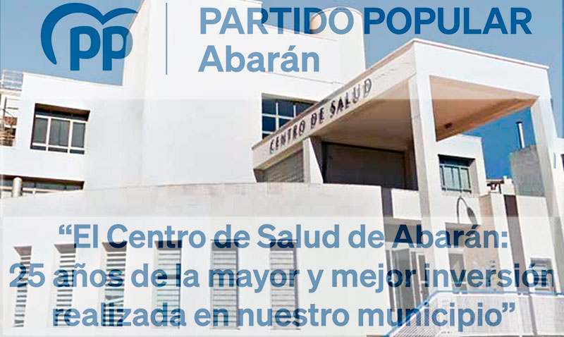 Coincidiendo con el 25 aniversario de la puesta en funcionamiento del Centro de Salud de Abarán, el Partido Popular ha definido este logro como «la mayor y mejor inversión que se ha realizado en nuestro municipio en las últimas décadas. Un centro que todos los abaraneros, desde los recién nacidos hasta los más ancianos, han utilizado alguna vez en su vida», recuerdan.
