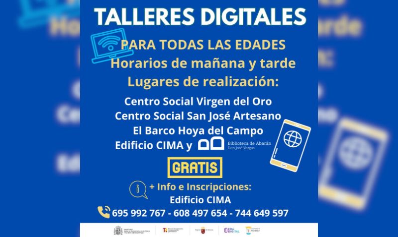 El Ayuntamiento de Abarán, en colaboración con el programa Era Digital, pone en marcha una nueva edición de los Talleres Digitales, una propuesta formativa gratuita dirigida a personas de todas las edades: niños, jóvenes, adultos e incluso empresas.