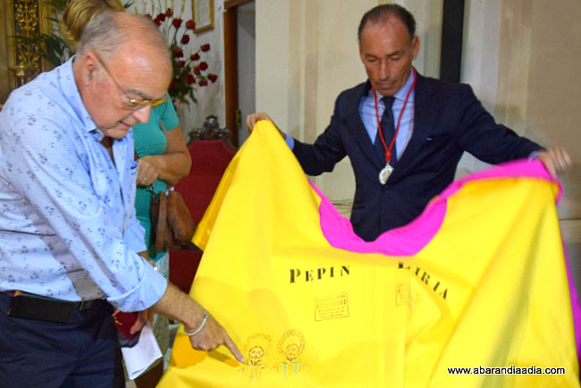 «Que los Santos Médicos bendigan este capote que hoy ponemos en las manos de Pepín Liria». Son las palabras con las que el sacerdote D. José María Hidalgo concluía la ceremonia religiosa celebrada este martes por la tarde en la Ermita de los patronos de Abarán y que sirvió para presentar y bendecir un capote convertido en obra de arte que acompañará al maestro Liria en su última tarde de toros.