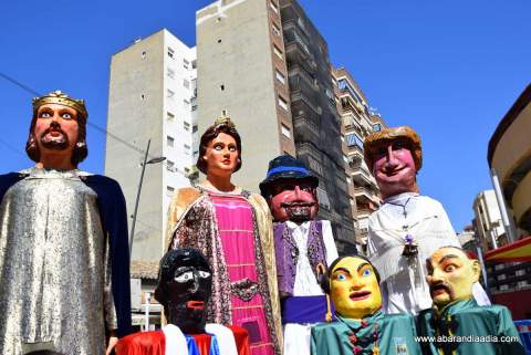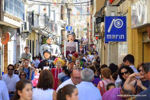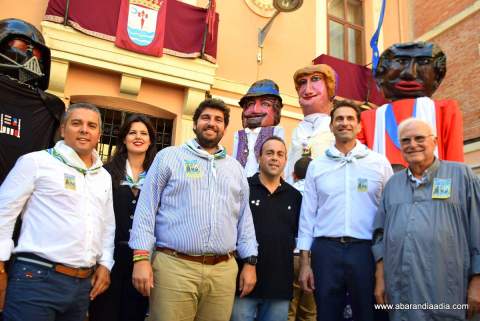 Grandes y pequeños vivieron y disfrutaron este domingo con gran intensidad el encuentro de gigantes y cabezudos 'Villa de Abarán', en una edición -la décimo novena-, que contó con invitados de excepción, entre ellos el presidente autonómico, Fernando López Miras, y la consejera de Turismo y Cultura, Miriam Guardiola Salmerón, a quienes el alcalde de Abarán, José Miguel Manzanares Peñaranda, transmitió una petición muy especial: que pongan en marcha los mecanismos necesarios para que esta cita gigantera sea declarara 'Fiesta de Interés Turístico Regional', algo que supondría un gran impulso para este encuentro nacional y que sería un gran regalo de cumpleaños para conmemorar, ya en 2019, el 20 aniversario.