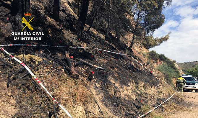 La Guardia Civil ha finalizado la investigación con la identificación de tres jóvenes, menores de edad, a los que les han sido instruidas diligencias como presuntos autores de los delitos de incendio forestal y de daños por incendio.