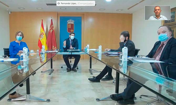El jefe del Ejecutivo regional, Fernando López Miras, presidió este jueves una nueva reunión del Comité de Seguimiento Covid donde se adoptaron las medidas que se implementarán a partir de este sábado en los diferentes municipios de la Región según sus indicadores epidemiológicos del nivel de riesgo de transmisión de la enfermedad COVID-19. Durante su intervención, el presidente adelantó que “la desescalada será lenta”.