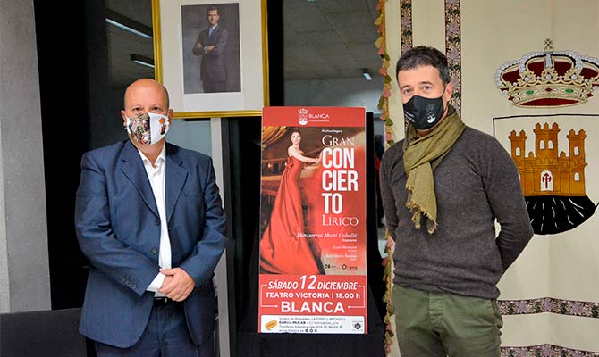Montserrat Martí Caballé actuará dentro de la programación de Navidad del Ayuntamiento de Blanca el próximo sábado, 12 de diciembre, a las 18:00 horas en el Teatro Victoria de Blanca. El evento fue presentado este viernes por el alcalde de Blanca, Pedro Luis Molina, y el concejal de Festejos, Vicente Candel, bajo el lema ‘Cultura Segura’.