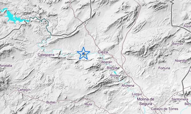 El temblor, que fue sentido también en Abarán, tuvo su hipocentro a solo 1 kilómetro de profundidad en el punto de latitud 38.2416 y longitud -1.5123.