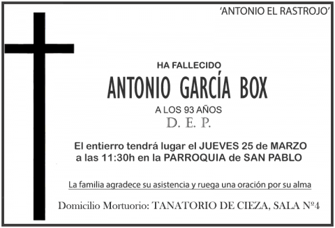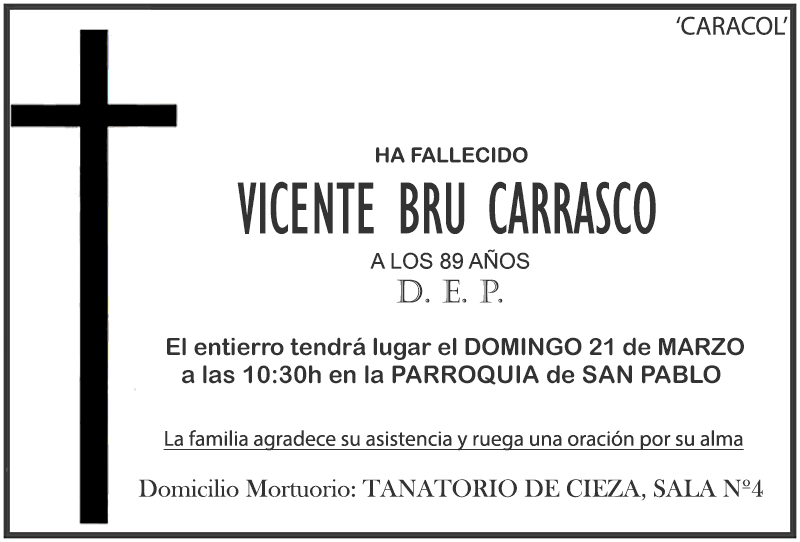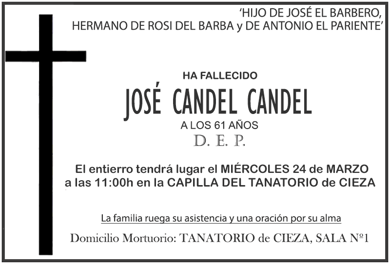 Si desean informar de la muerte de un familiar/amigo/conocido y facilitarnos los datos de sus exequias (hora del entierro, domicilio mortuorio, etc), contacte por WhatsApp en el 615 27 89 22.
