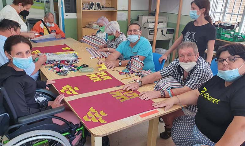 El alumnado del Centro Ocupacional ‘La Noria’ está inmerso en la elaboración de varias decenas de banderines que engalanarán la calle Dr. Molina de nuestra localidad en próximo miércoles, 9 de junio, fecha en la que se conmemora el Día de la Región de Murcia.