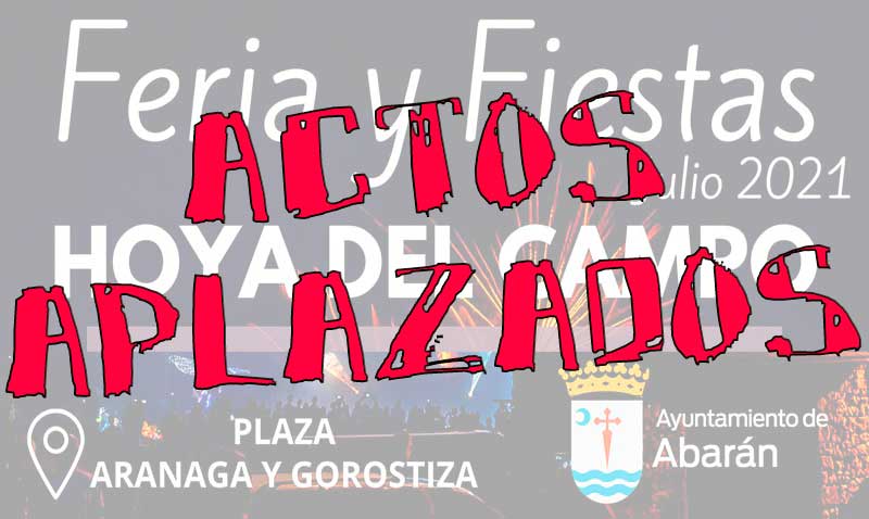 El Ayuntamiento de Abarán ha informado este jueves que «debido al fuerte incremento de casos positivos en Covid-19 que se vienen registrando en los últimos días y que sitúan a nuestro municipio en nivel de riesgo alto (nivel 3), quedan aplazados todos los eventos y actos previstos a realizar durante los próximos 15 días, tanto en el casco urbano de Abarán como en las barriadas», lo que supone la cancelación de la programación prevista para este fin de semana con motivo de las Fiestas 2021 en Hoya del Campo en honor a Santiago Apóstol.