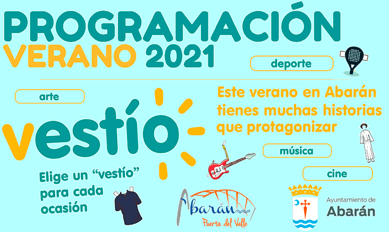 El Ayuntamiento de Abarán ha dado a conocer este jueves la programación de ‘vESTÍO’, una iniciativa que cuenta con una serie de actividades, culturales, deportivas y de ocio que se desarrollarán en los meses de julio y agosto y en las que colaboran distintas concejalías.