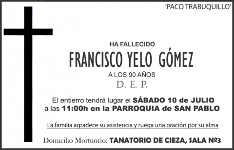 Si desean informar de la muerte de un familiar/amigo/conocido y facilitarnos los datos de sus exequias (hora del entierro, domicilio mortuorio, etc), contacte por WhatsApp en el 615 27 89 22.